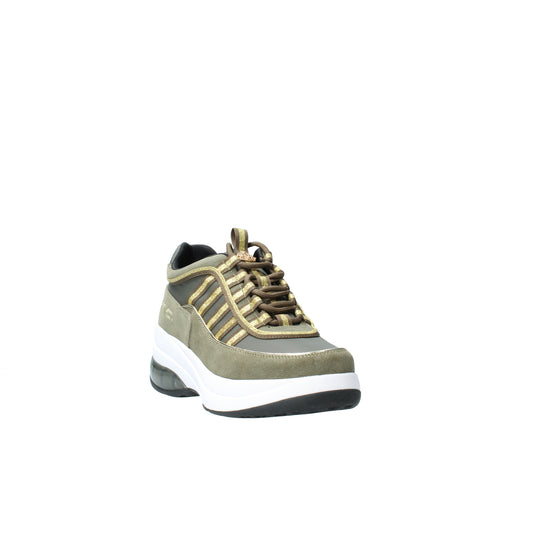 Sneakers up army green suede con zeppa Fornarina