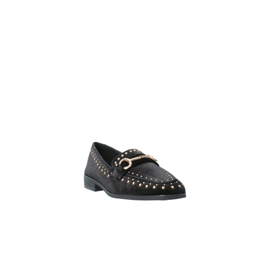 Mocassini neri in velluto con borchie e morsetto