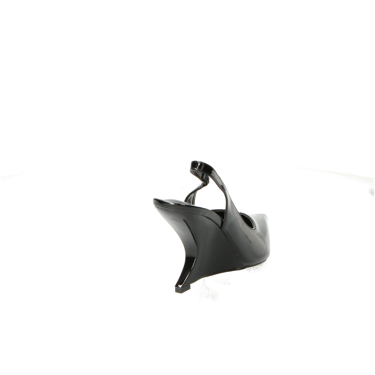 Scarpe slingback nere in vernice con zeppa piramide altezza 8 cm